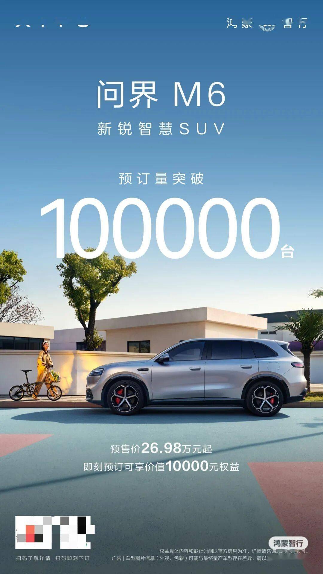 ❼ 鸿蒙智行问界 M6 预订量冲破 10 万台,预售 26。98 万元起。