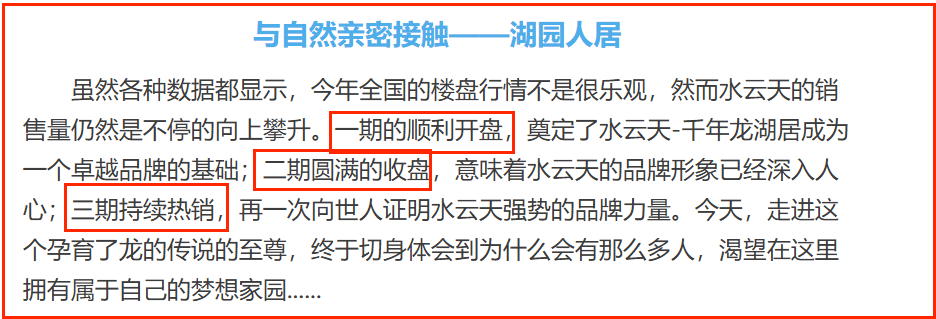 2018年前后,水云天四期正式启动预售,当时开荒商海南迪纳斯投资借着一至三期的成熟口碑,肆意传播主城区商住两用公寓、近湖景、配套全等卖点,以此吸引客户下单。
