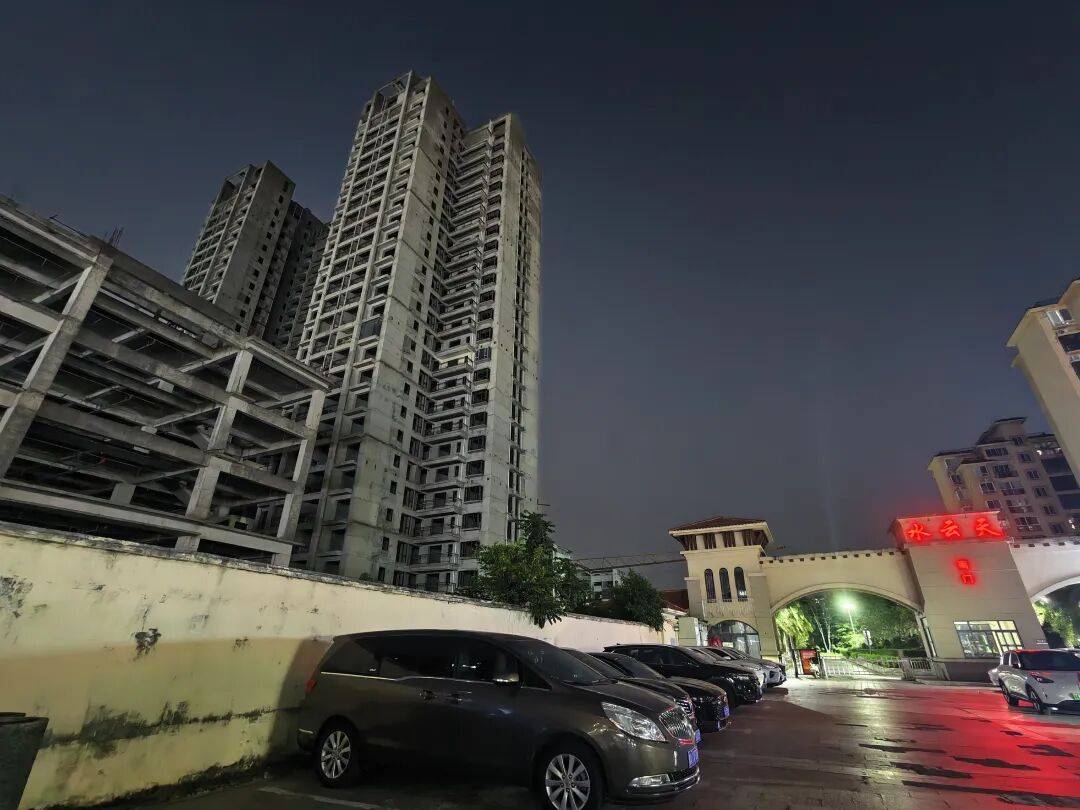 岁月来到2019年中旬,水云天四期彻底停工,工地一共闭停、施工队撤离,只剩下两栋刚封顶的水泥框架,从此沦为闹市区的孤楼。