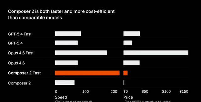 Composer 2 Fast不但速率堪称地外最疾,况且订价也只提到了1.5/7.5美元,同样比1.5版省钱57%。